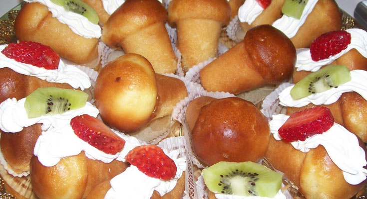Il babà non è un dolce come tanti altri ma ha una sua storia ed una provenienza ben definita. Si tratta di un dolce tipico della pasticceria napoletana, realizzato con pasta lievitata, la cui consistenza spugnosa viene imbevuta in uno sciroppo liquoroso a base di rhum che gli conferisce l’inconfondibile sapore. Esso si presenta in due varianti: la classica forma a fungo di varie dimensioni, dai 5 ai 15 cm, e la versione a “ciambella” farcita al centro con la panna o con crema pasticcera e frutta sciroppata.